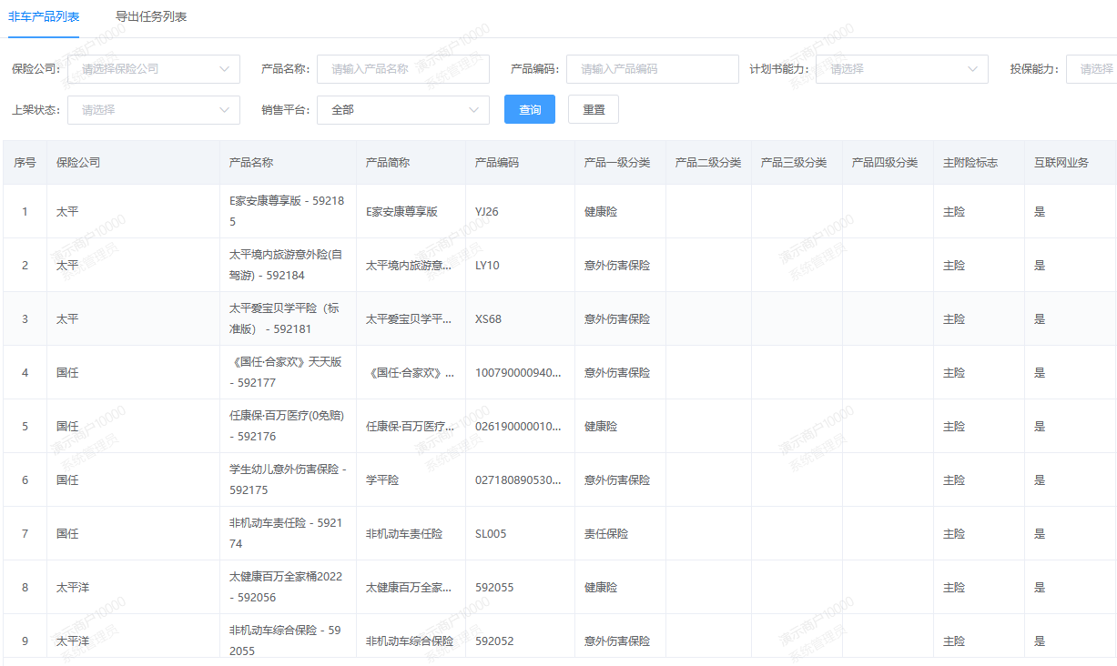标准的财产险监管报表分类,为录单/数据回传自动匹配产品提供基础产品能力