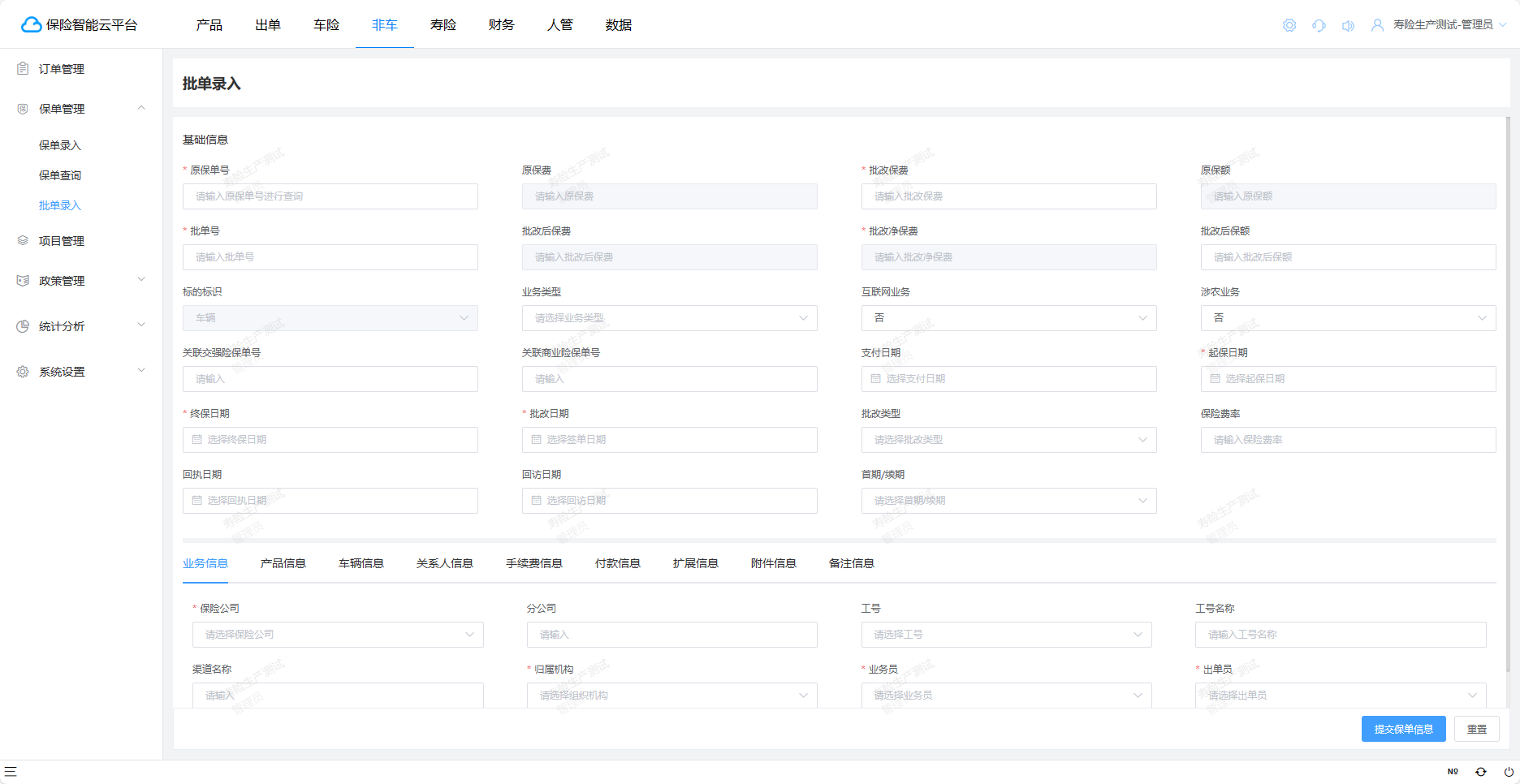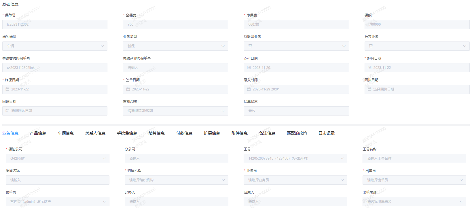 除随车的非车险保单管理外,还支持团险、雇主责任险、共保单、财产险、货运险等多种业务